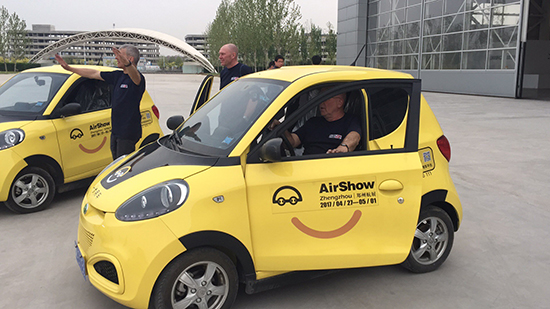 在當(dāng)天活動現(xiàn)場,還舉行了一步用車鄭州航展官方用車平臺簽約交付儀式。一步用車向2017鄭州航展執(zhí)委會免費提供50輛“小黃車”作為通勤用車,航展執(zhí)委會日常辦公、駕駛員和機場工作人員日常通勤,安保及警察周邊巡邏均使用這些“小黃車”。