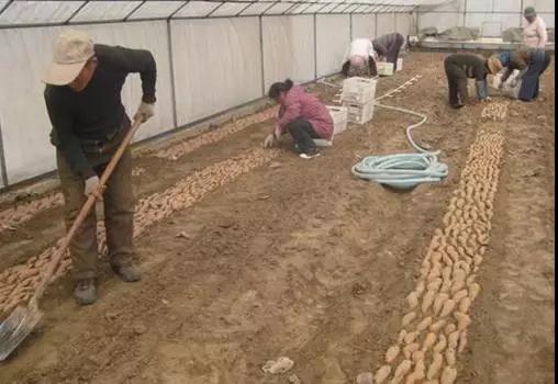 紅薯入棚后,地上澆一次水,棚上蓋上草簾.越冬期棚內(nèi)當(dāng)氣溫降至9 ℃ --10℃時(shí),薯堆上開始蓋一層棉墊即可保溫,中、后期,薯堆保持10 ℃ - 12℃, 若薯堆低于此溫,利用睛天拉開大棚上草簾,增溫后,草簾拉下,保持10 ℃ - 12℃。