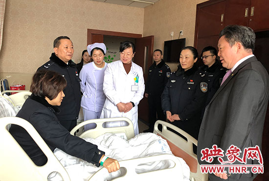 鄭東分局局長張予西等領(lǐng)導同志看望在病床上的宋穎穎
