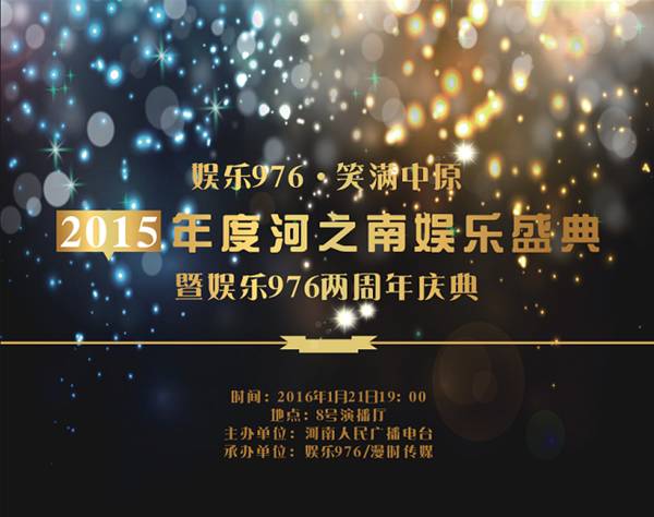 2016年1月21日,8號演播廳,河之南娛樂盛典2015年度頒獎典禮娛樂976兩周年慶典即將呈現(xiàn)!