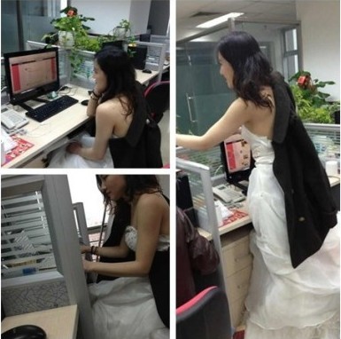 事件還原:原公司“女神”變恨嫁女穿婚紗來上班