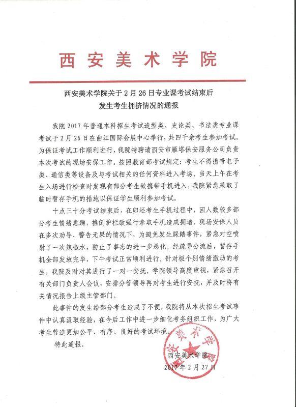 西安美術(shù)學(xué)院發(fā)布的情況通報。
