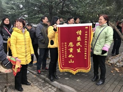 11月29日,三門峽市銀堤漫步小區(qū)數(shù)十位業(yè)主敲鑼打鼓冒雨將兩面寫有“情系民生 恩重如山”、“心系百姓 為民排憂”的錦旗送到三門峽市委和市政府,感謝新的領(lǐng)導(dǎo)班子為他們千余戶業(yè)主解決了存在五年的住房難問(wèn)題。