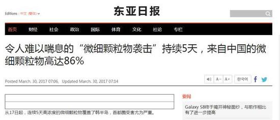 《韓聯(lián)社》3月27日:來自中國(guó)的霧霾在惡化,對(duì)策也灰蒙蒙