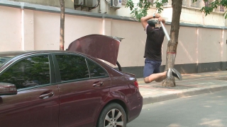 空降"飛人" 樓下司機(jī)竟被砸