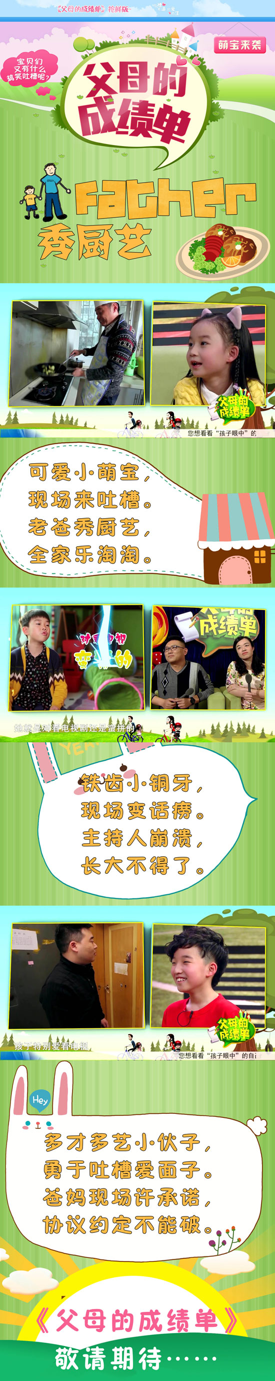 《父母的成績單》河南衛(wèi)視(周一晚)21點15分播出!想了解這期節(jié)目中孩子們有哪些雷人吐槽嘛,想知道父母們的精彩表現(xiàn)嗎?先來看看下面的圖文花絮感受一下吧。